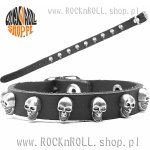 Pieszczocha wykonana jest z wysokiej jakości czarnej skóry, a ozdobne metalowe czaszki nadają jej niepowtarzalny, odważny wygląd.