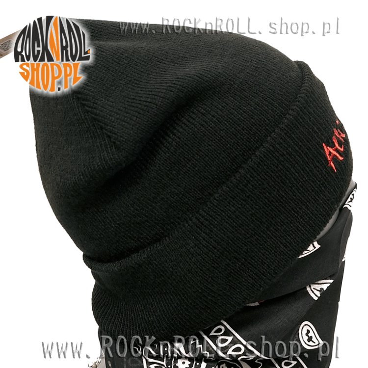 Czapka ma klasyczny, podwijany brzeg, na którym umieszczono haft, dzięki czemu napis jest dobrze widoczny.