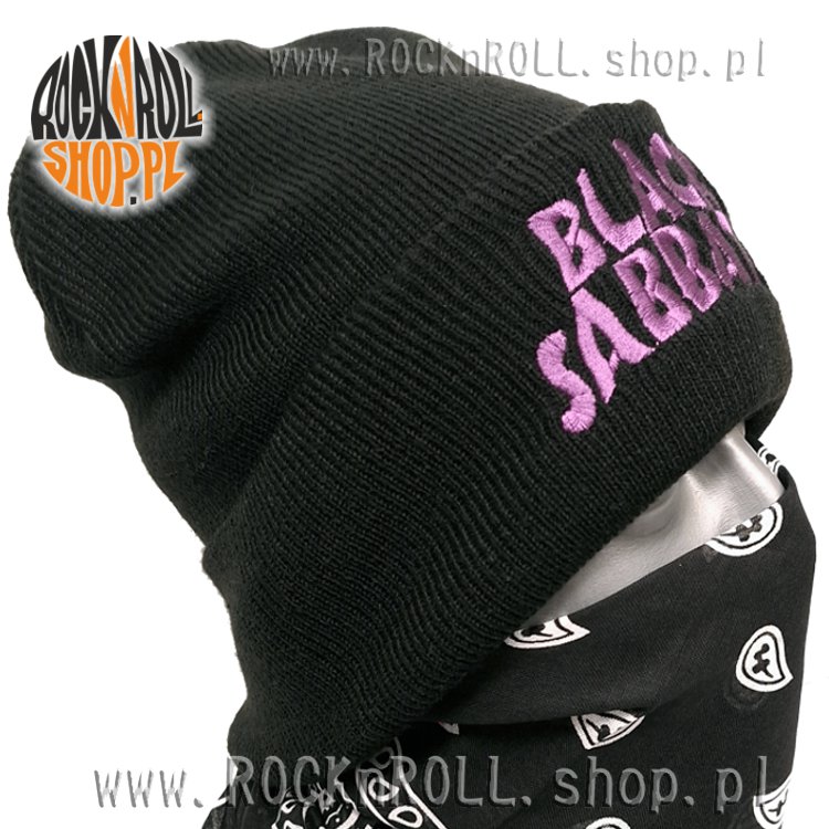 Z przodu znajduje się wyrazisty, fioletowy haft przedstawiający nazwę zespołu Black Sabbath.