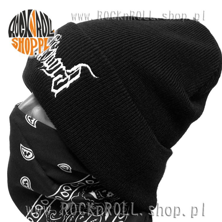 Czapka ma klasyczny, podwijany brzeg, na którym umieszczono haft, dzięki czemu napis jest dobrze widoczny.