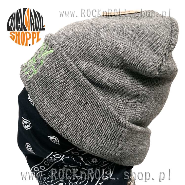 Czapka ma klasyczny, podwijany brzeg, na którym umieszczono haft, dzięki czemu napis jest dobrze widoczny.