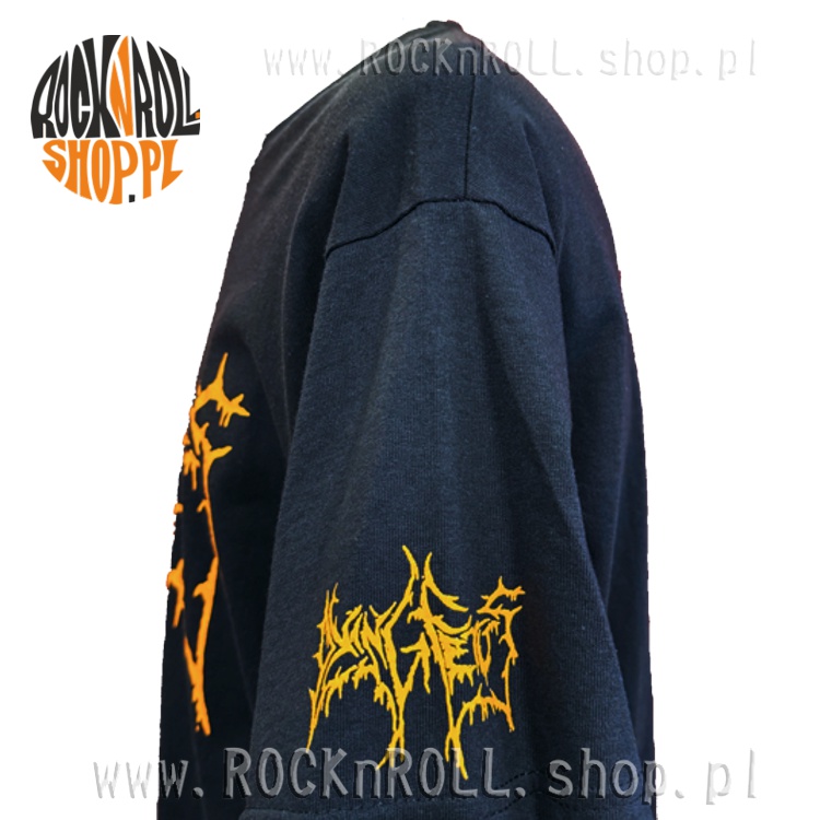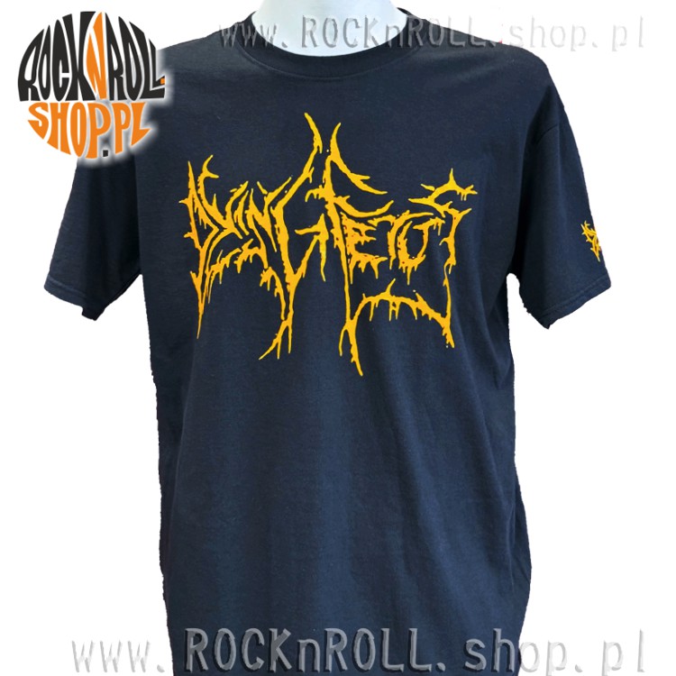 Czarna koszulka z logo zespołu Dying Fetus w kolorze pomarańczowym.