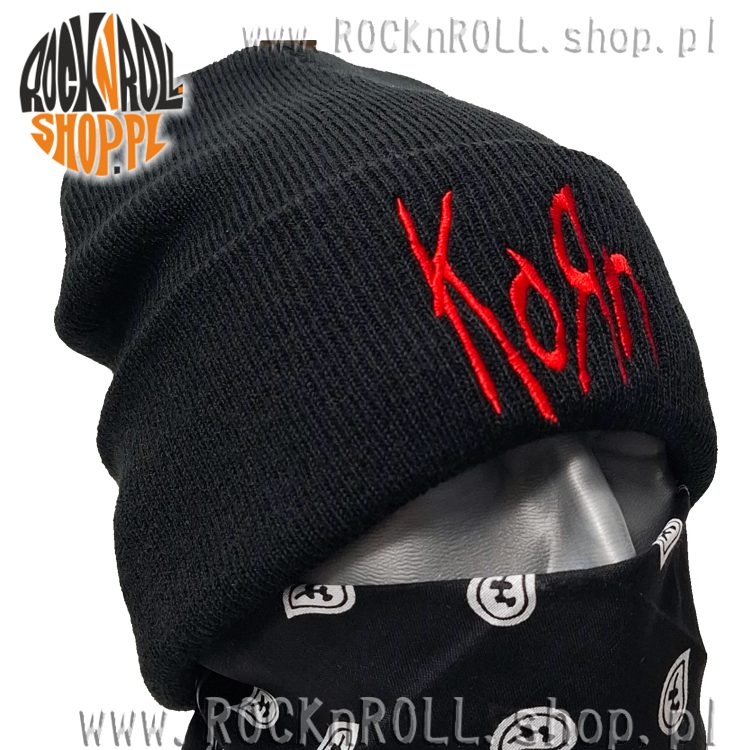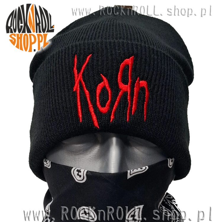 Z przodu znajduje się wyrazisty, czerwony haft przedstawiający logo zespołu KoRn.