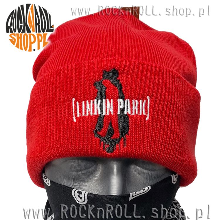 Z przodu znajduje się wyrazisty, biało-czarny haft przedstawiający logo zespołu Linkin Park.