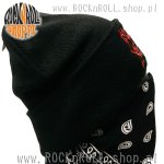 Czarna, zimowa czapka wykonana z wełny akrylowej, która dobrze dopasowuje się do głowy i zapewnia ciepło.