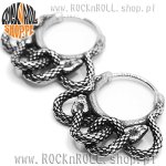 Kolczyki w kształcie kółek ze splecionymi wężami w kolorze srebrnym to doskonały wybór dla osób, które chcą wyróżnić się z tłumu i dodać swojej stylizacji odrobinę pazura.