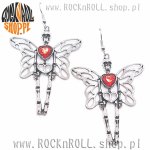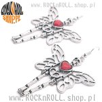 Wyjątkowe kolczyki o mrocznym, artystycznym charakterze, łączące motyw motyla z elementami szkieletu. Ażurowe skrzydła i srebrzysta forma kontrastują z czerwonym, sercowatym zdobieniem, tworząc wyrazisty efekt.
