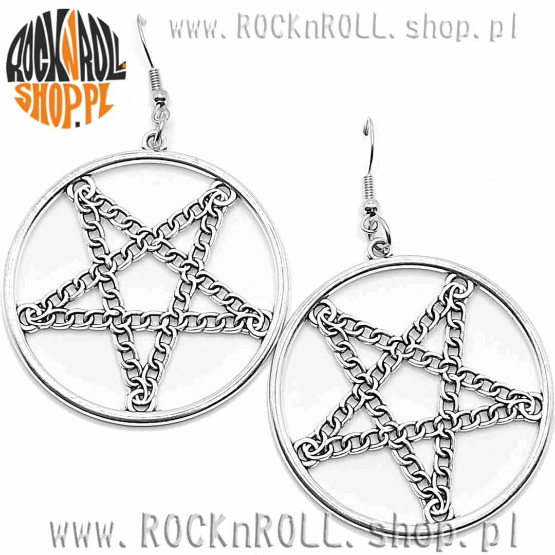 Kolczyki koła z łańcuchowym pentagramem kolorze srebrnym to wyrazisty dodatek dla osób, które chcą wyróżnić się z tłumu i podkreślić swój indywidualny styl.