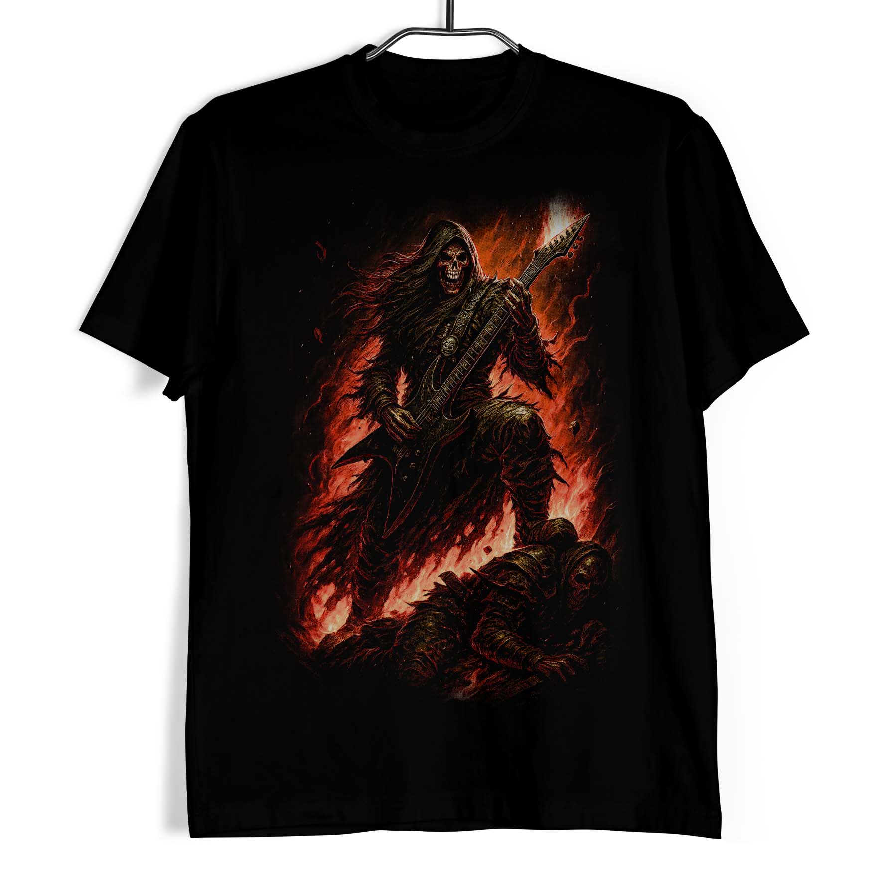 Koszulka męska w kolorze czarnym ze wzorem przedstawiającym piekielnego gitarzystę.