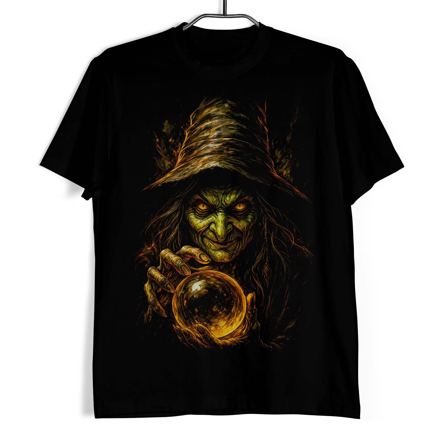 Koszulka męska w kolorze czarnym ze wzorem przedstawiającym słowiańską wiedźmę.