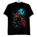 Koszulka męska w kolorze czarnym ze wzorem przedstawiającym latające w nocy nietoperze.