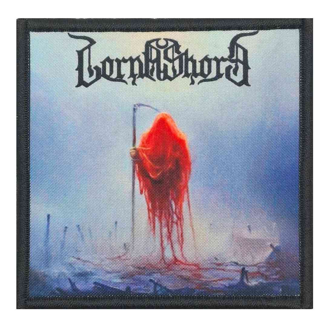 Naszywka wykonana metodą off-set z nadrukiem okładki płyty kapeli Lorna Shore.