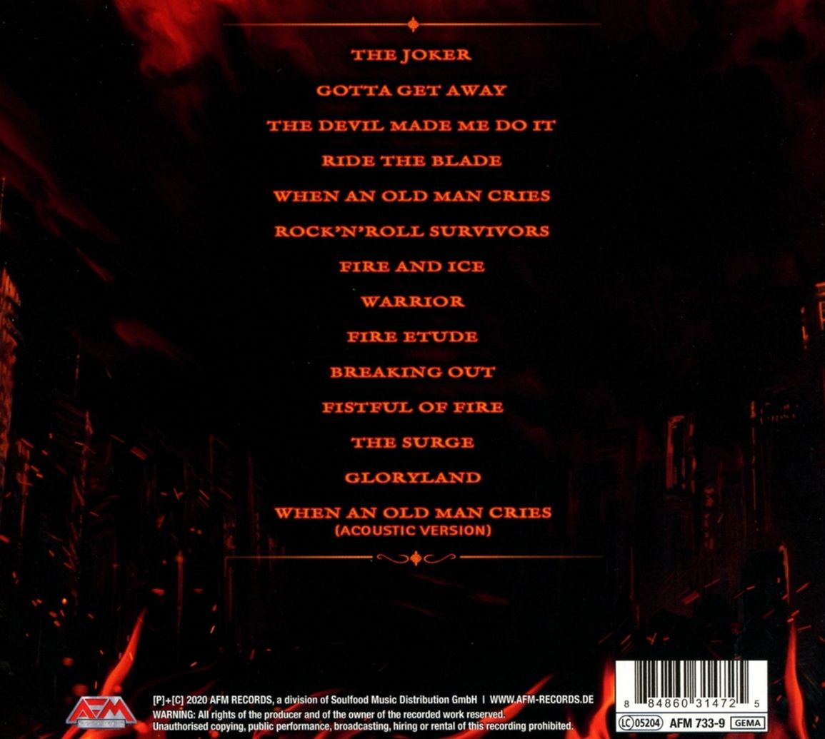 Na "Fistful Of Fire" znajdują się zarówno klasyczne hard rockowe hymny jak Rock’n’Roll Survivors, silne riffy w Fire And Ice, jak i nastrojową balladę When An Old Man Cries, która pojawia się również w wersji akustycznej.