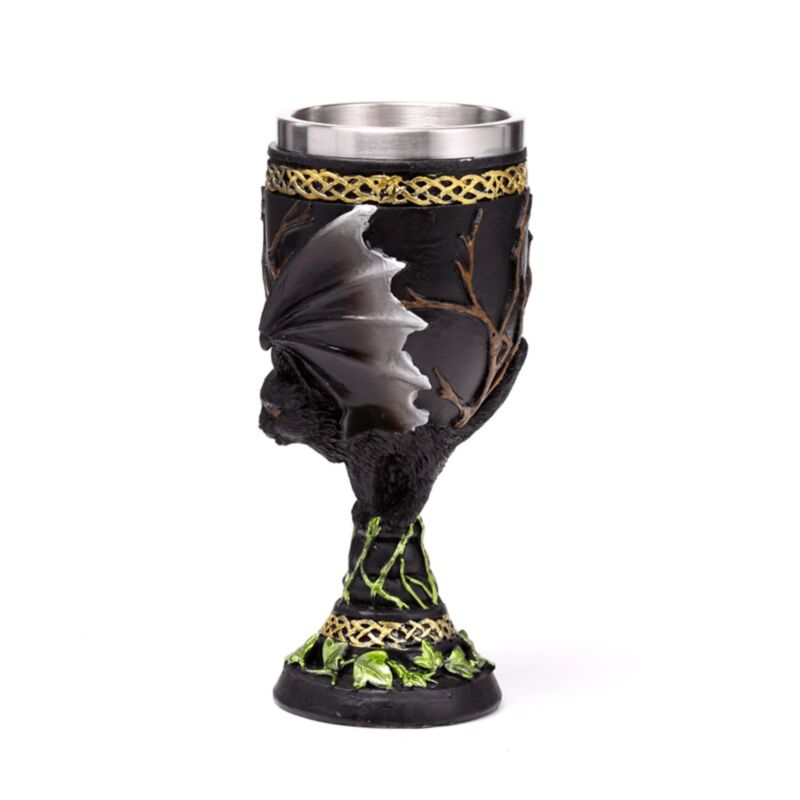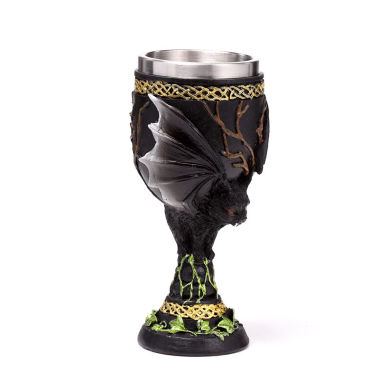 Wykonany z żywicy i stali nierdzewnej, kielich zachwyca detalami i gotyckim stylem.