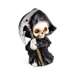 Figurka przedstawia komicznego Żniwiarza odzianego w zwiewny czarny płaszcz, dzierżącego klasyczną kosę.