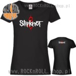 Czarna koszulka damska z kolczastym "S" i logiem 9-osobowej zamaskowanej grupy o mocnym brzmieniu - SlipKnot.