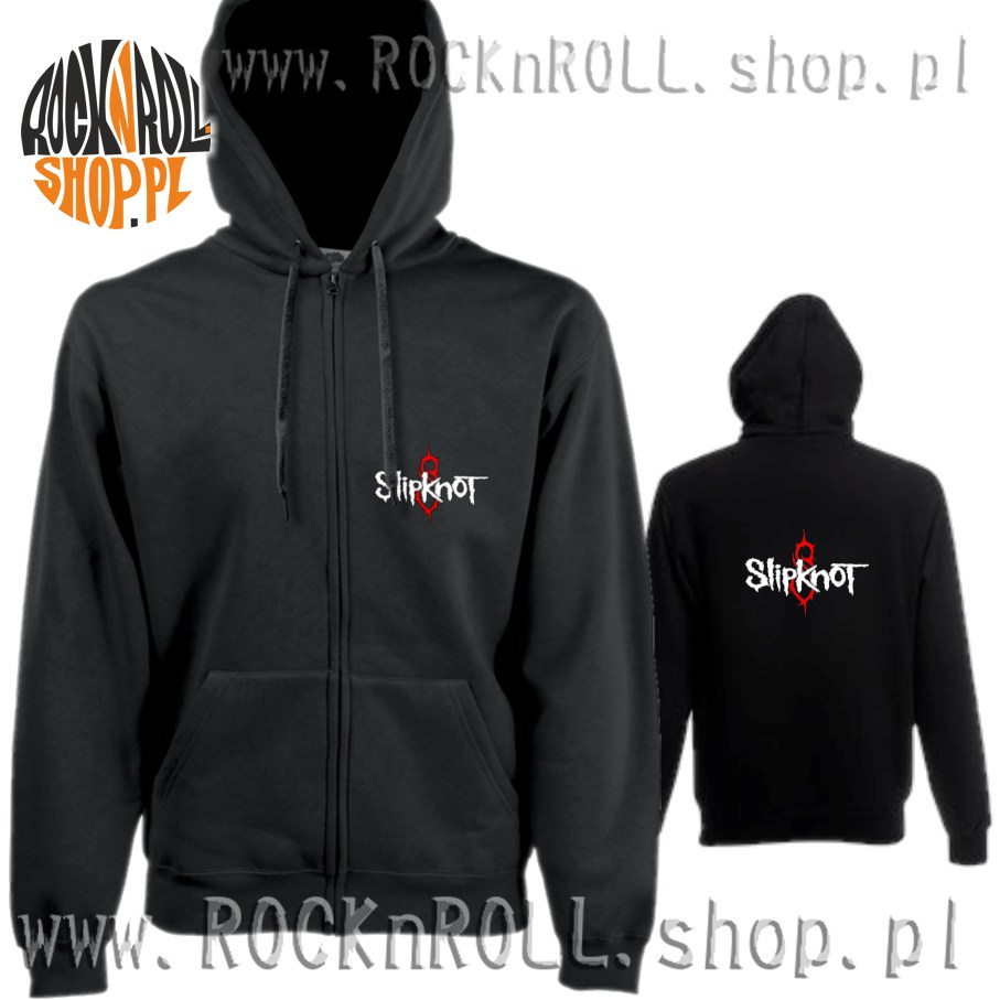 Znane wszystkim logo zamaskowanej grupy SlipKnot na ciepłej bluzie z kapturem zapinanej na zamek. Posiada elastyczne mankiety i pasek, kaptur ściągany sznureczkami. Mały nadruk z przodu, większy z tyłu na plecach. 2 kieszenie z przodu.