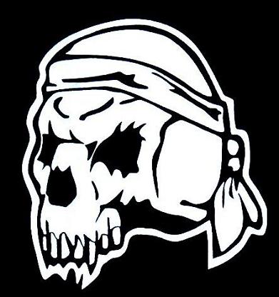 Naszywka ze straszną czaszką o ostrych zębach, w bandamce. Prosta ale wymowna.wymiary ok. (cm); 7,5 x 7,5