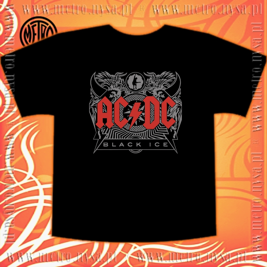 Klasyka hard-rock'a - grupy AC/DC - z nadrukiem okładki płyty pt: "Black Ice" - na czarnym komfortowym t-shircie.