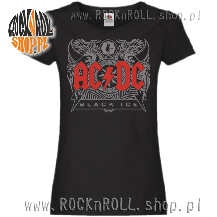 Wygodna czarna koszulka damska z okładką wyśmienitej płyty "Black Ice" klasyki hard-rock'a z Sydney - grupy AC/DC