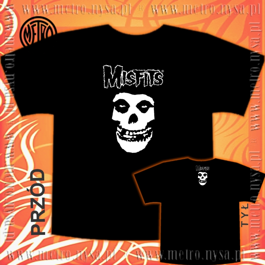 Czarny t-shirt z drukowanym logiem punkrock'owego zespołu Misfits, znanego również jako prekursor horror-punk'u.