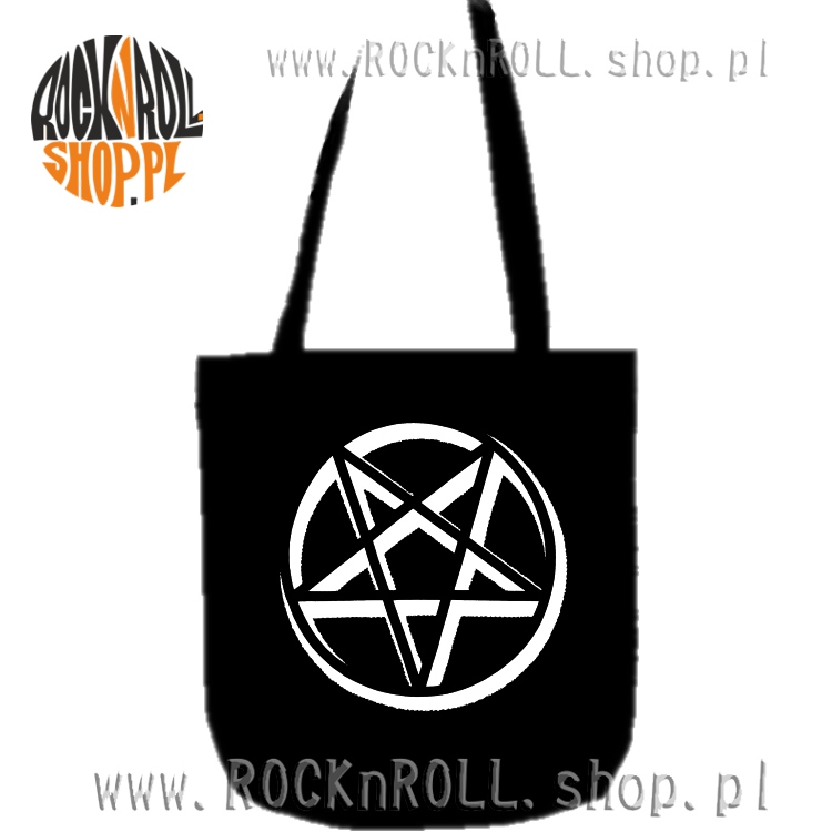 Wygodna oraz pojemna torebka ekologiczna na ramię z długim uchem z drukowanym symbolem mrocznego  pentagramu.