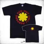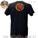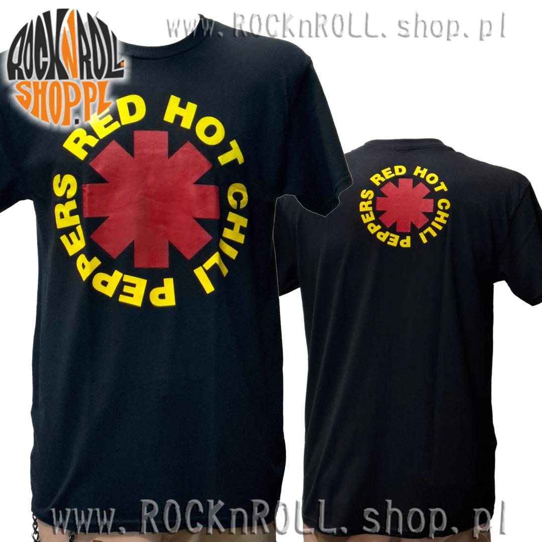 Super czarny t-shirt z logiem popularnej kalifornijskiej grupy muzycznej Red Hot Chili Peppers z gatunku rocka z elementami funku.