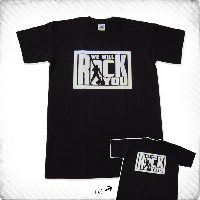 Kiedyś te słowa zaśpiewał Freddie Mercury. Do dziś to popularne hasło można słyszeć wśród wielu młodych ludzi i zespołów pragnących uwolnić się od świata zewnętrznego na rzecz muzycznego. Super koszulka z optymistycznym hasłem "We will rock You!".