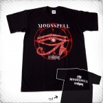 Mroczna koszulka z logiem oka Horusa jako symbolu płyty "Irreligious" black/gothic-metalowego zespołu Moonspell.