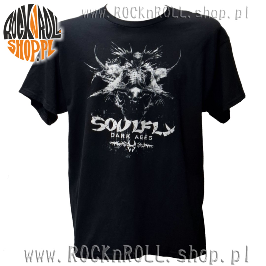 Czarny t-shirt z nadrukiem loga zespołu Soulfly oraz ich mrocznej okładki płyty pt. "Dark Ages".
