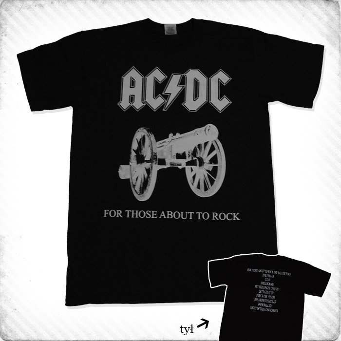 Koszulka klasyki mocnego rock'a AC/DC z okładką studyjnego albumu "For Those About to Rock We Salute You", w kolorze szarym.