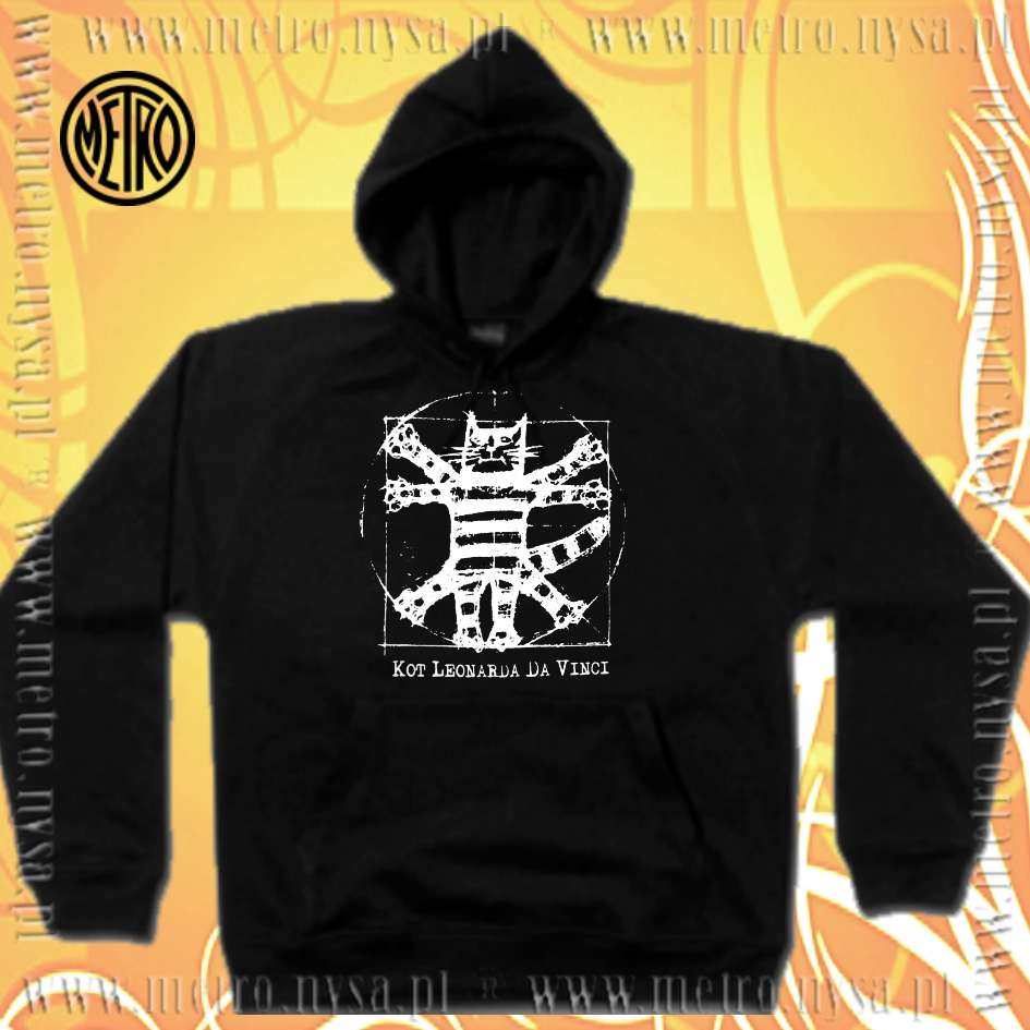 Czarna bluza z kapturem, bardzo dobra gatunkowo, z zabawnym dość nietypowym kotem.
