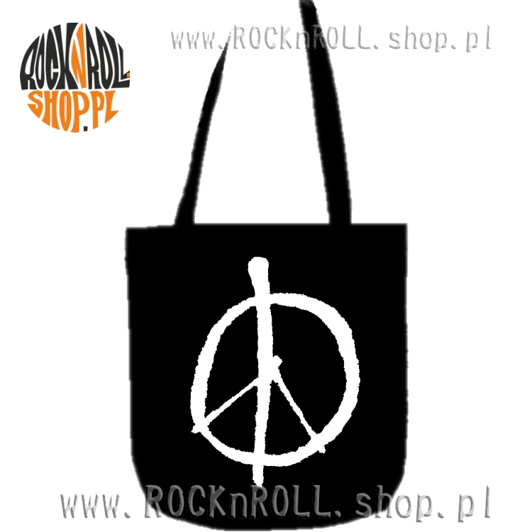 Torebka ekologiczna na ramię z długim uchem oraz drukowanym symbolem "graffiti" pacyfki.