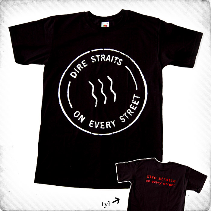 T-shirt z nadrukiem okładki płyty brytyjskiego zespołu rock'owego Dire Straits zatytułowanej "On Every Street".