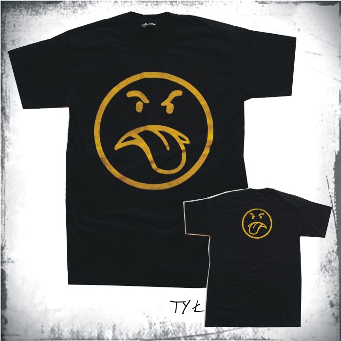 Koszulka z logiem buźki przeciwstawnej to "Uśmiechu" - zła "Angry".