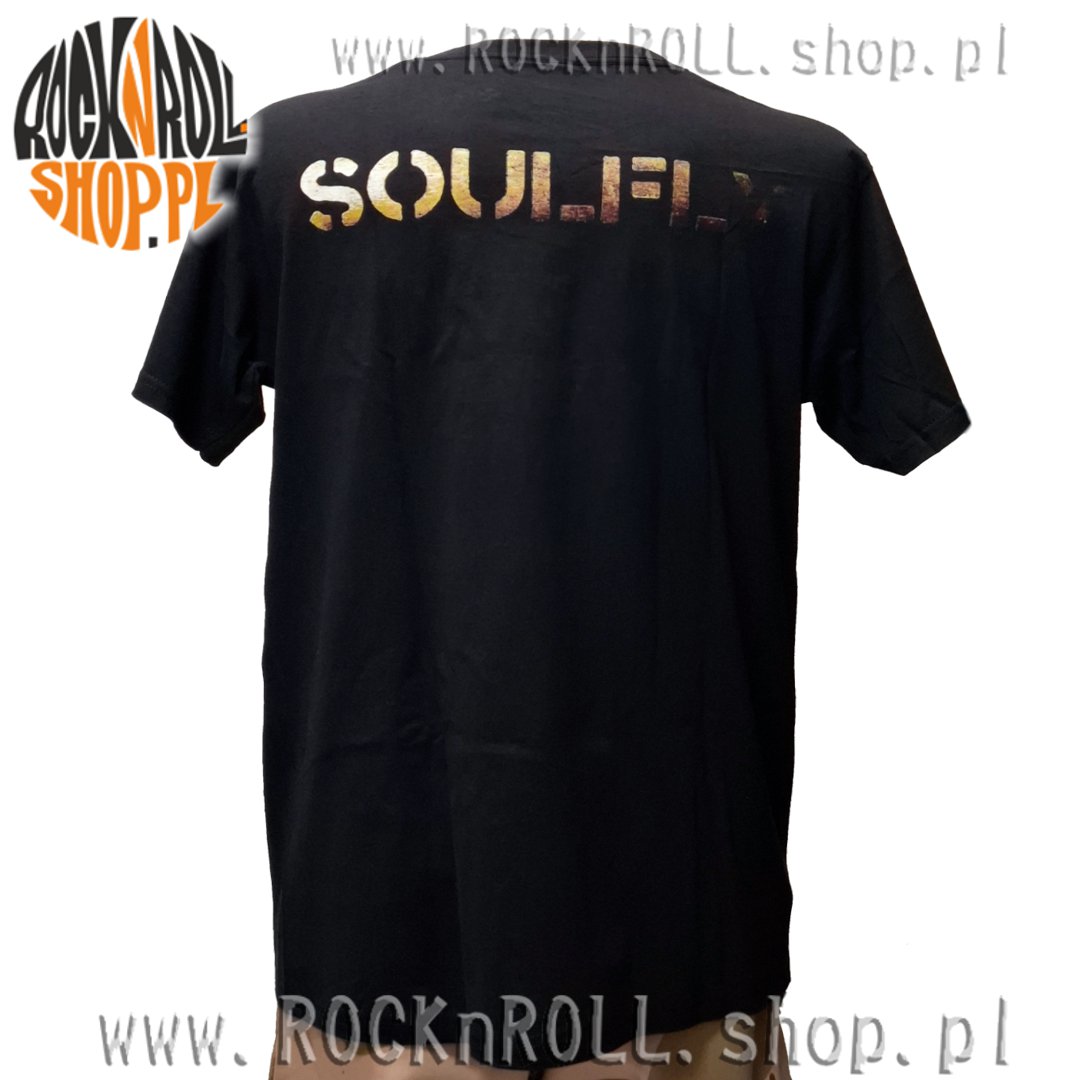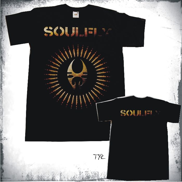 T-shirt zespołu z gatunku groove-thrash metalu Soulfly, z nadrukiem ich charakterystycznego symbolu.