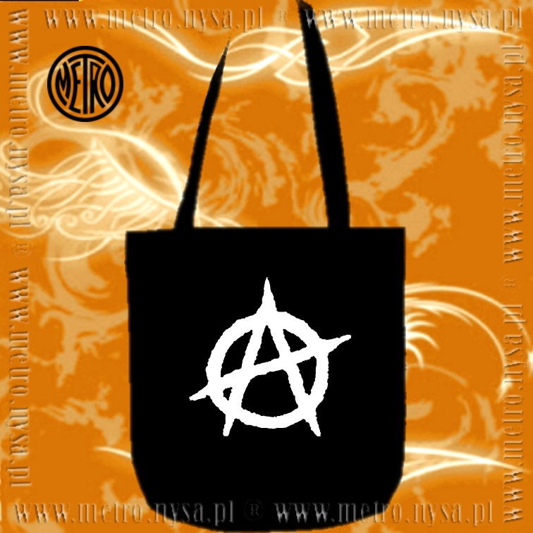 Czarna torba ekologiczna na ramię z długim uchem, bardzo wygodna i pojemna. Posiada biały nadruk nieśmiertelnego symbolu ANARCHII.