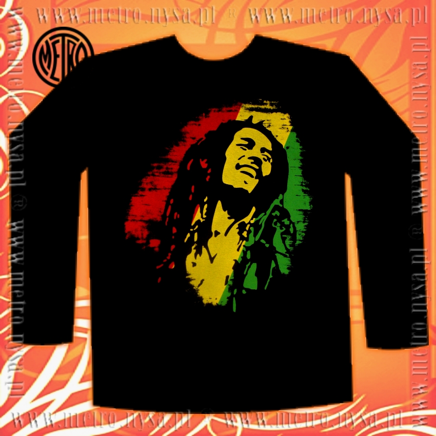 Świetny longsleeve przedstawiający światową gwiazdę reggae. Kolorowy wzór z którego każdy fan Marleya na pewno będzie zadowolony.