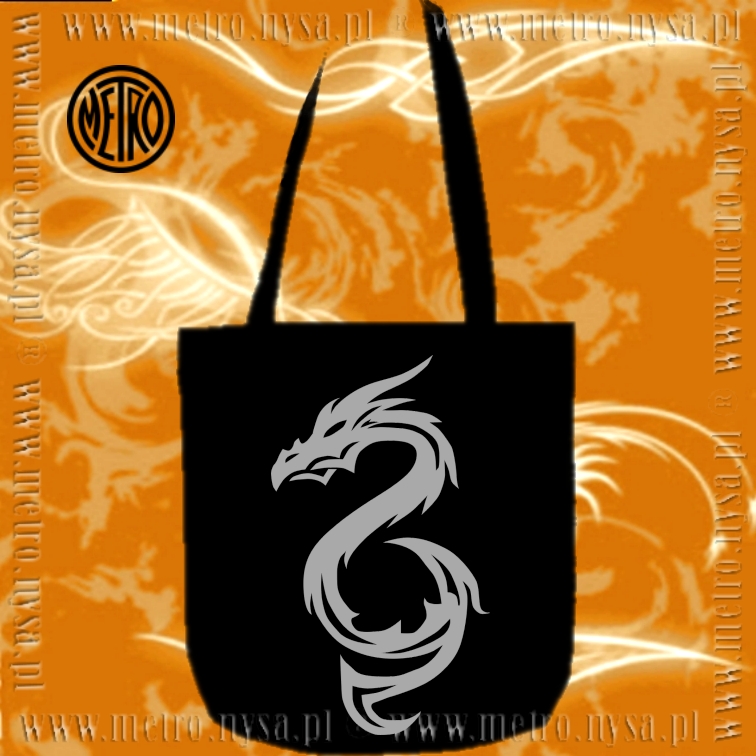 Czarna wygodna i praktyczna torba ekologiczna z grafiką smoka. Prosty, lecz wyraźny i bardzo fajny wzór.