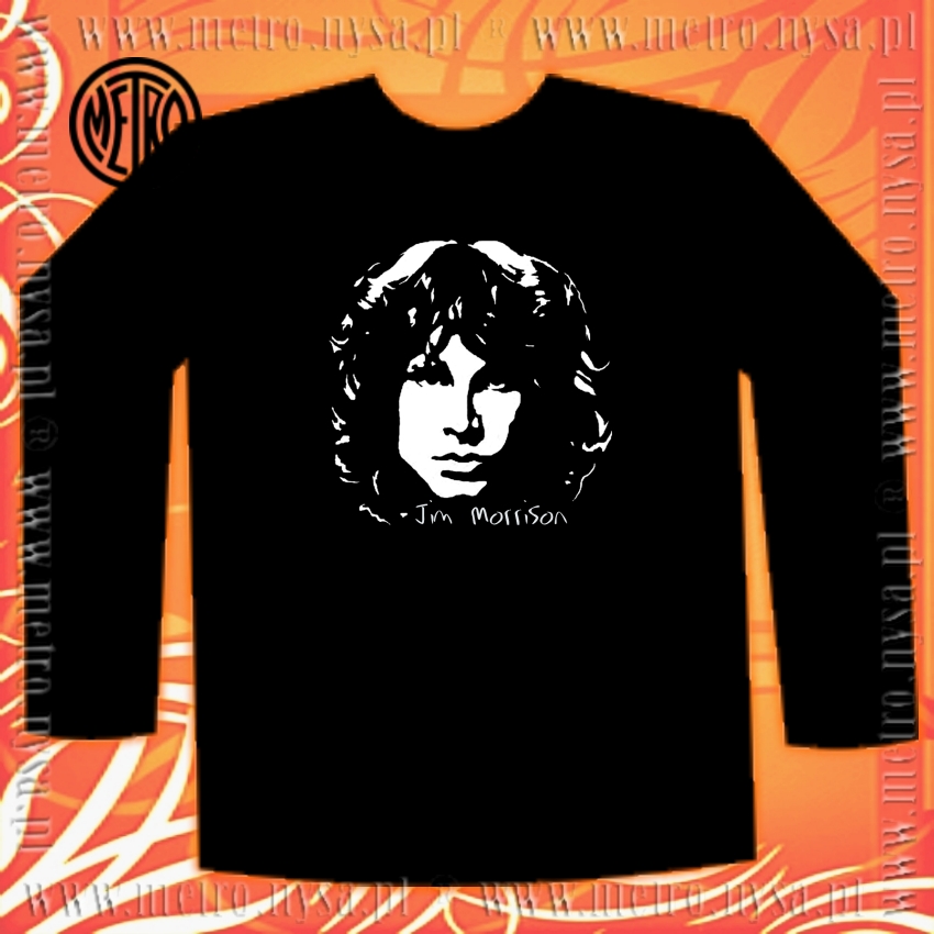 Świetny longsleeve przedstawiający światową gwiazdę rocka. Czarna koszulka z twarzą frontmana zespołu The Doors - Jim Morrison