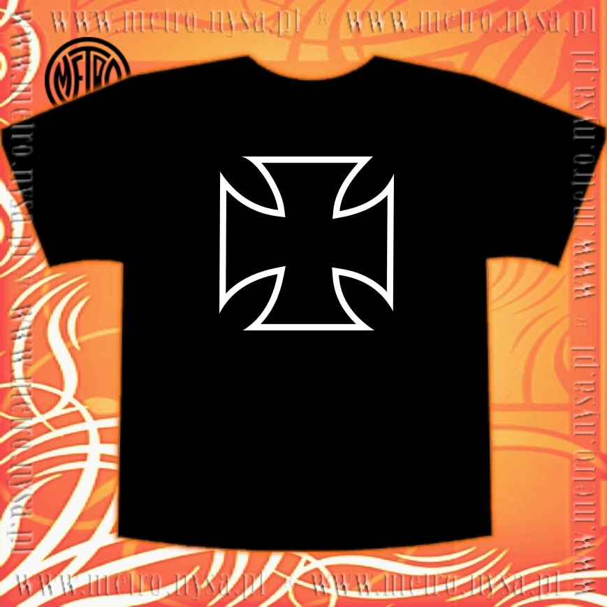 Czarny T-Shirt z grafiką motocyklowego żelaznego krzyża.