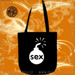 Czarna wygodna i praktyczna torba ekologiczna z zabawnym nadrukiem Sex Bomby