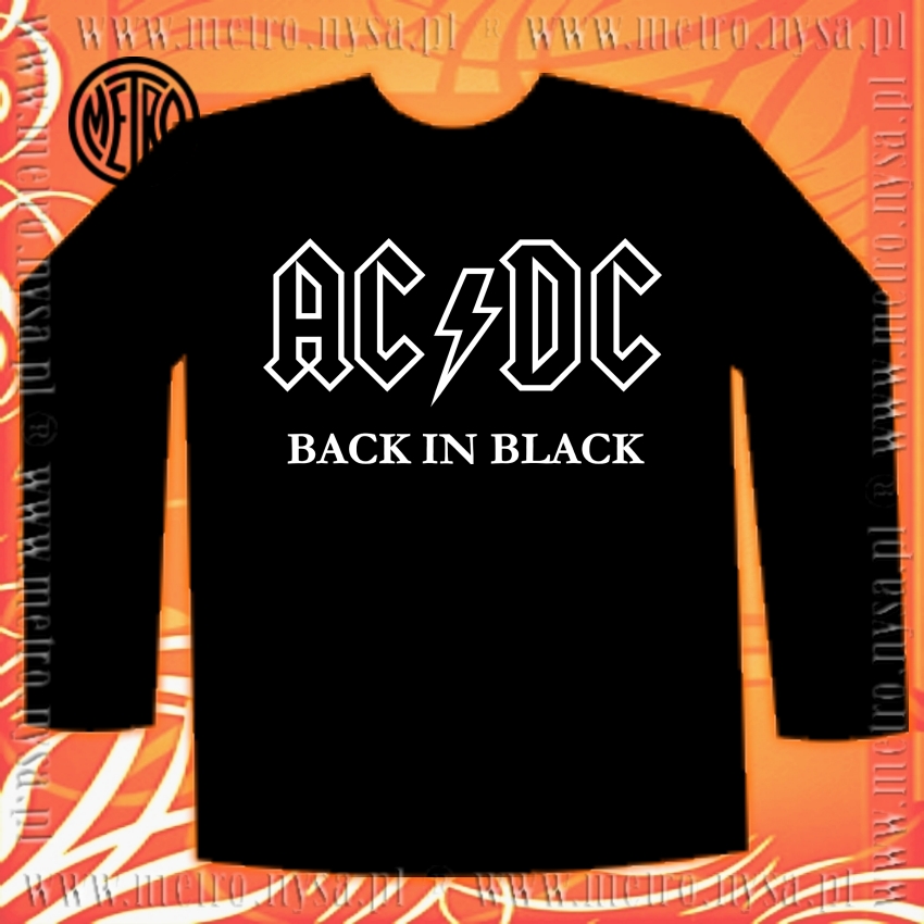 Świetny longsleeve z logiem legendy rock n rolla, australijskiego AC/DC! Ponadto bluzka posiada nadruk tytułu płyty Back in Black
