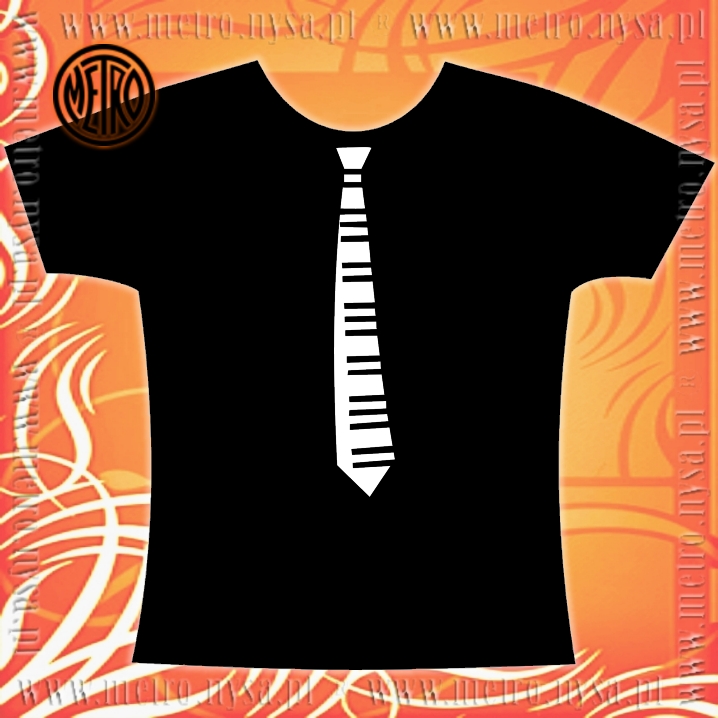 Czarna damska koszulka z nadrukowanym krawatem wzorowanym na klawiaturze pianina