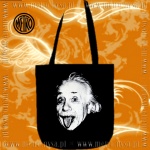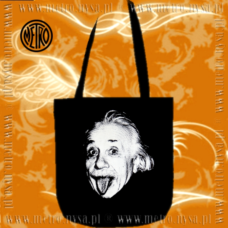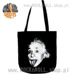 Czarna wygodna i praktyczna torba ekologiczna z zabawnym nadrukiem postaci Alberta Einsteina