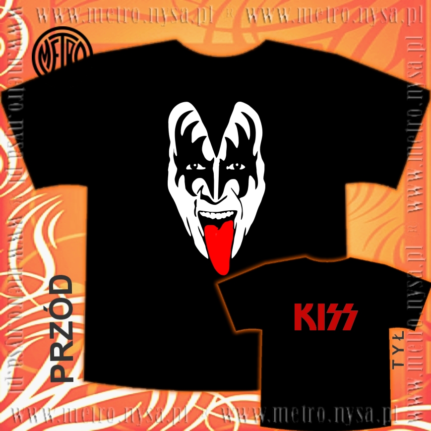 Czarny t-shirt z grafiką okładki płyty kultowej glam rockowej formacji KISS