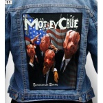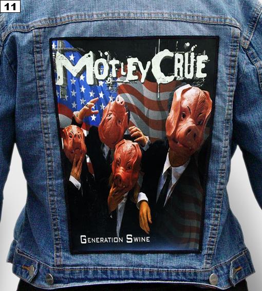 Ekran z nadrukiem grafiki glam rockowej kapeli Motley Crue.