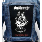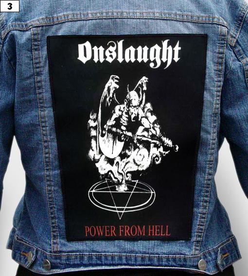 Ekran z nadrukiem okładki thrash metalowej grupy Onslaught.
